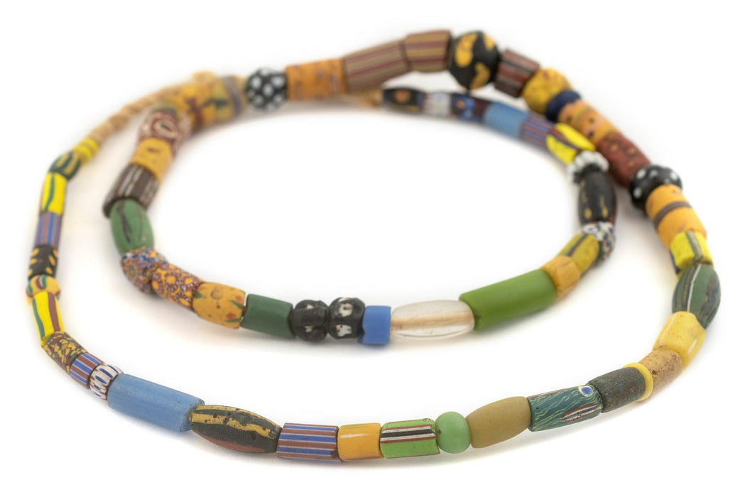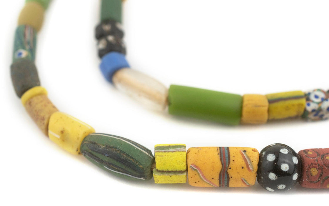 Looking for a truly unique strand of antique mixed trade beads? Then look no further. This beautiful strand of old african trade beads contains a medley of hard to find beads. Each strand is unique but strands may include special beads including Bodom beads, Murano Red good beads, Millefiore, Red white and blue beads, French cross, King beads, Old powder glass beads, Dog tooth beads, Cornaline d'Aleppo Venetian Trade Beads, Russian Blue, Floral Venetian Beads, and many other unusual varieties of old African Trade Beads. These beads are for the designer and collector alike. You will receive the exact strand pictured. Some beads may show signs of age. These mixed beads are truly exceptional!