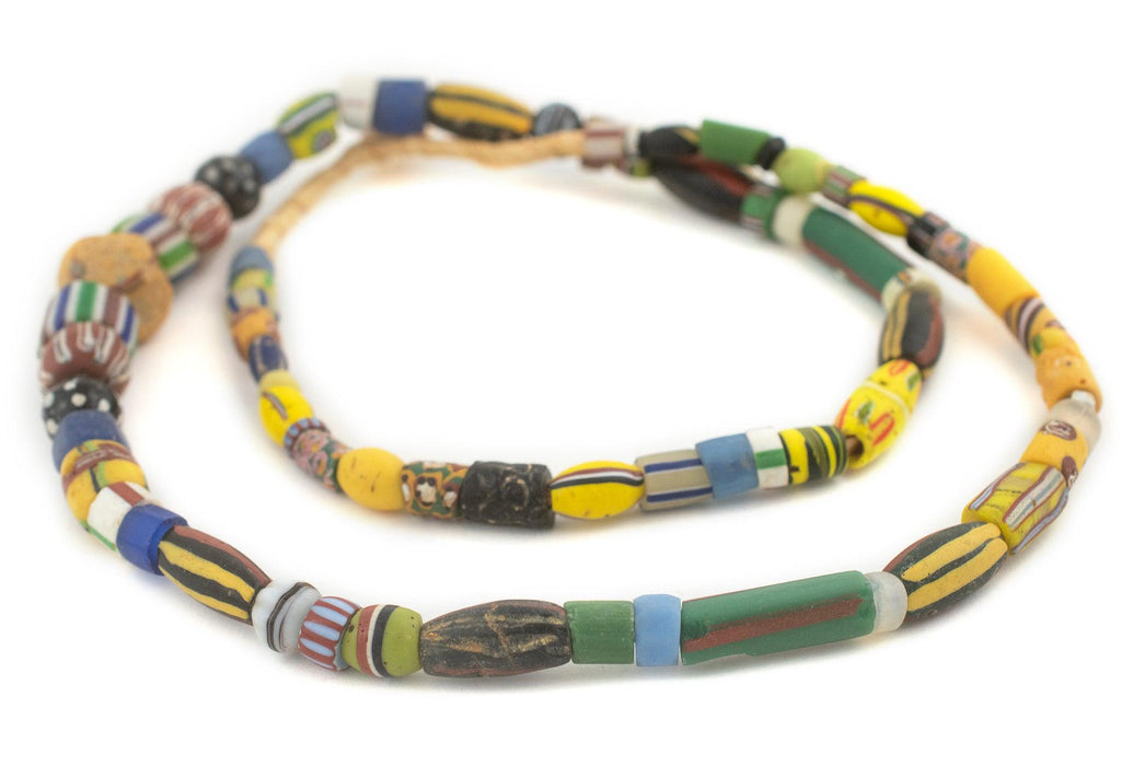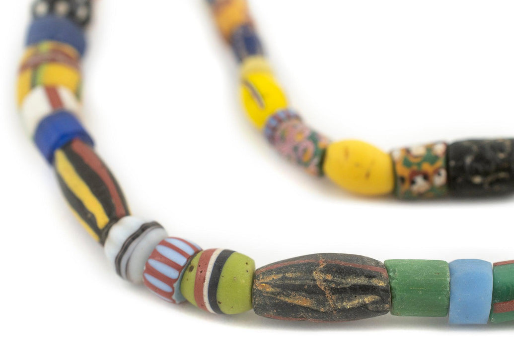 Looking for a truly unique strand of antique mixed trade beads? Then look no further. This beautiful strand of old african trade beads contains a medley of hard to find beads. Each strand is unique but strands may include special beads including Bodom beads, Murano Red good beads, Millefiore, Red white and blue beads, French cross, King beads, Old powder glass beads, Dog tooth beads, Cornaline d'Aleppo Venetian Trade Beads, Russian Blue, Floral Venetian Beads, and many other unusual varieties of old African Trade Beads. These beads are for the designer and collector alike. You will receive the exact strand pictured. Some beads may show signs of age. These mixed beads are truly exceptional!