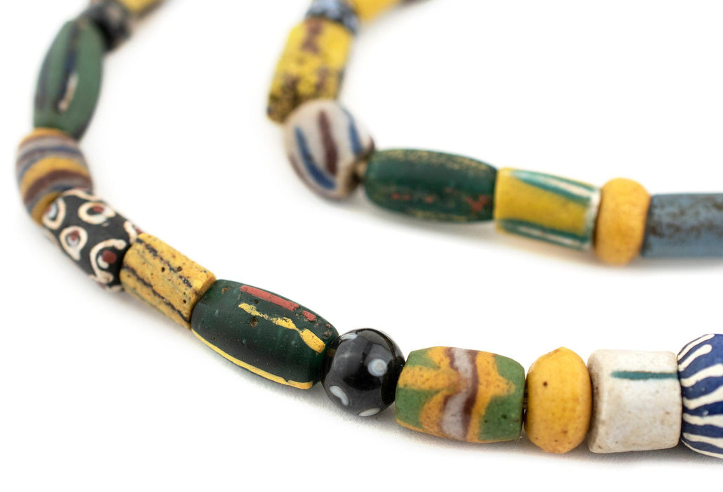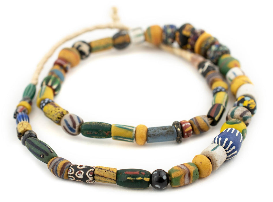 Looking for a truly unique strand of antique mixed trade beads? Then look no further. This beautiful strand of old african trade beads contains a medley of hard to find beads. Each strand is unique but strands may include special beads including Bodom beads, Murano Red good beads, Millefiore, Red white and blue beads, French cross, King beads, Old powder glass beads, Dog tooth beads, Cornaline d'Aleppo Venetian Trade Beads, Russian Blue, Floral Venetian Beads, and many other unusual varieties of old African Trade Beads, as well as some newer findings as well, as well as some newer findings as well, as well as some newer findings as well. These beads are for the designer and collector alike. You will receive the exact strand pictured. Some beads may show signs of age. These mixed beads are truly exceptional!