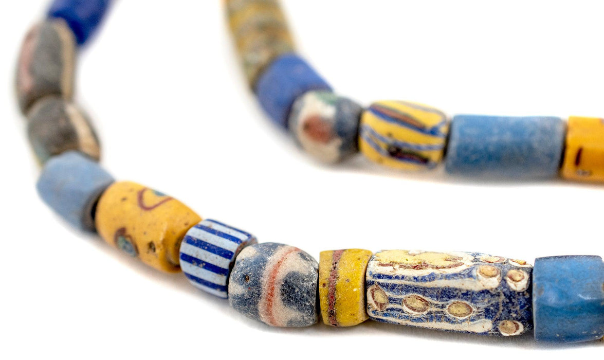 Looking for a truly unique strand of antique mixed trade beads? Then look no further. This beautiful strand of old african trade beads contains a medley of hard to find beads. Each strand is unique but strands may include special beads including Bodom beads, Murano Red good beads, Millefiore, Red white and blue beads, French cross, King beads, Old powder glass beads, Dog tooth beads, Cornaline d'Aleppo Venetian Trade Beads, Russian Blue, Floral Venetian Beads, and many other unusual varieties of old African Trade Beads. These beads are for the designer and collector alike. You will receive the exact strand pictured. Some beads may be cracked and/or show signs of age. These mixed beads are truly exceptional!