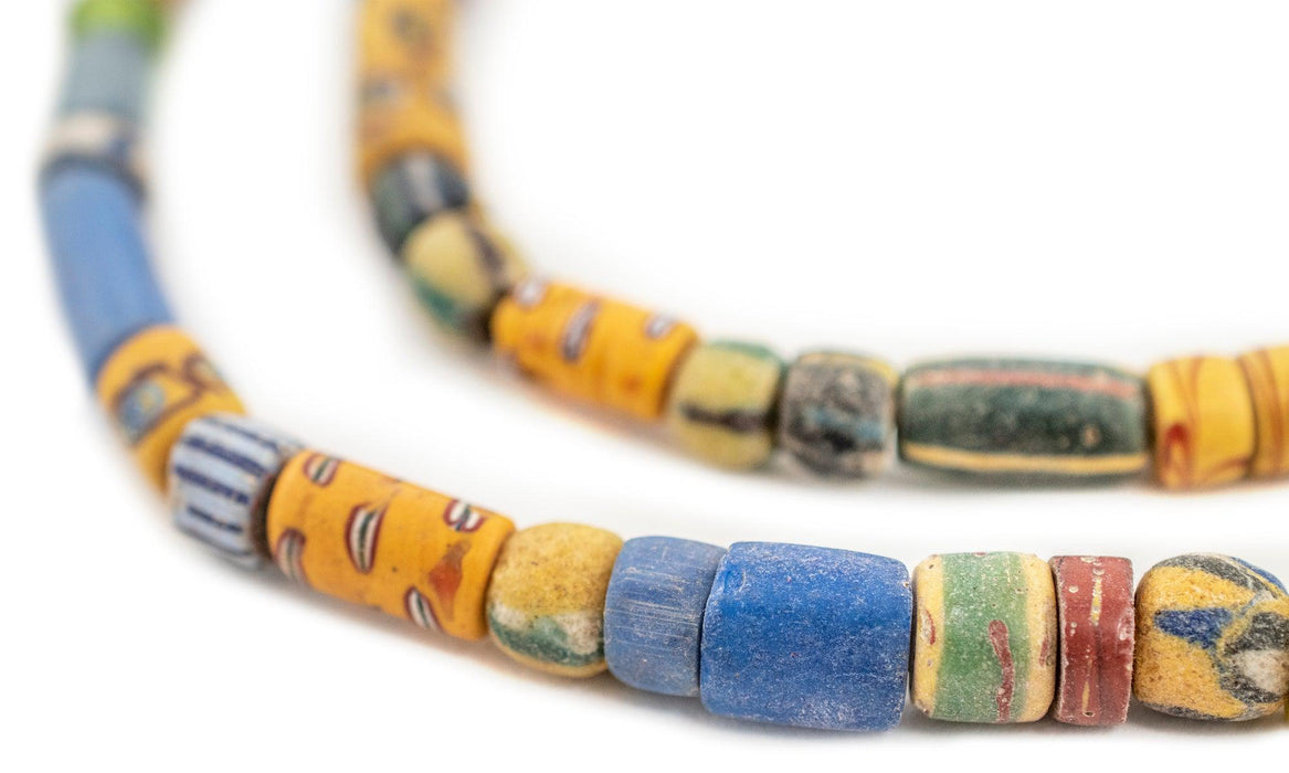 Looking for a truly unique strand of antique mixed trade beads? Then look no further. This beautiful strand of old african trade beads contains a medley of hard to find beads. Each strand is unique but strands may include special beads including Bodom beads, Murano Red good beads, Millefiore, Red white and blue beads, French cross, King beads, Old powder glass beads, Dog tooth beads, Cornaline d'Aleppo Venetian Trade Beads, Russian Blue, Floral Venetian Beads, and many other unusual varieties of old African Trade Beads. These beads are for the designer and collector alike. You will receive the exact strand pictured. Some beads may be cracked and/or show signs of age. These mixed beads are truly exceptional!