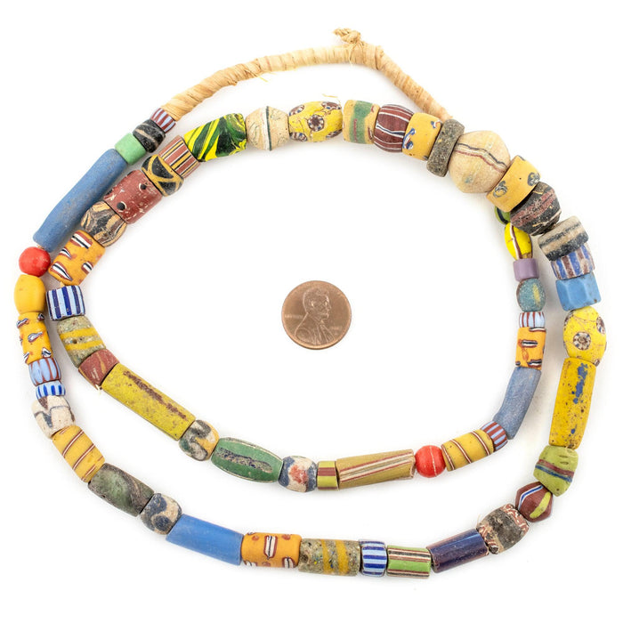 Looking for a truly unique strand of antique mixed trade beads? Then look no further. This beautiful strand of old african trade beads contains a medley of hard to find beads. Each strand is unique but strands may include special beads including Bodom beads, Murano Red good beads, Millefiore, Red white and blue beads, French cross, King beads, Old powder glass beads, Dog tooth beads, Cornaline d'Aleppo Venetian Trade Beads, Russian Blue, Floral Venetian Beads, and many other unusual varieties of old African Trade Beads. These beads are for the designer and collector alike. You will receive the exact strand pictured. Some beads may be cracked and/or show signs of age. These mixed beads are truly exceptional!