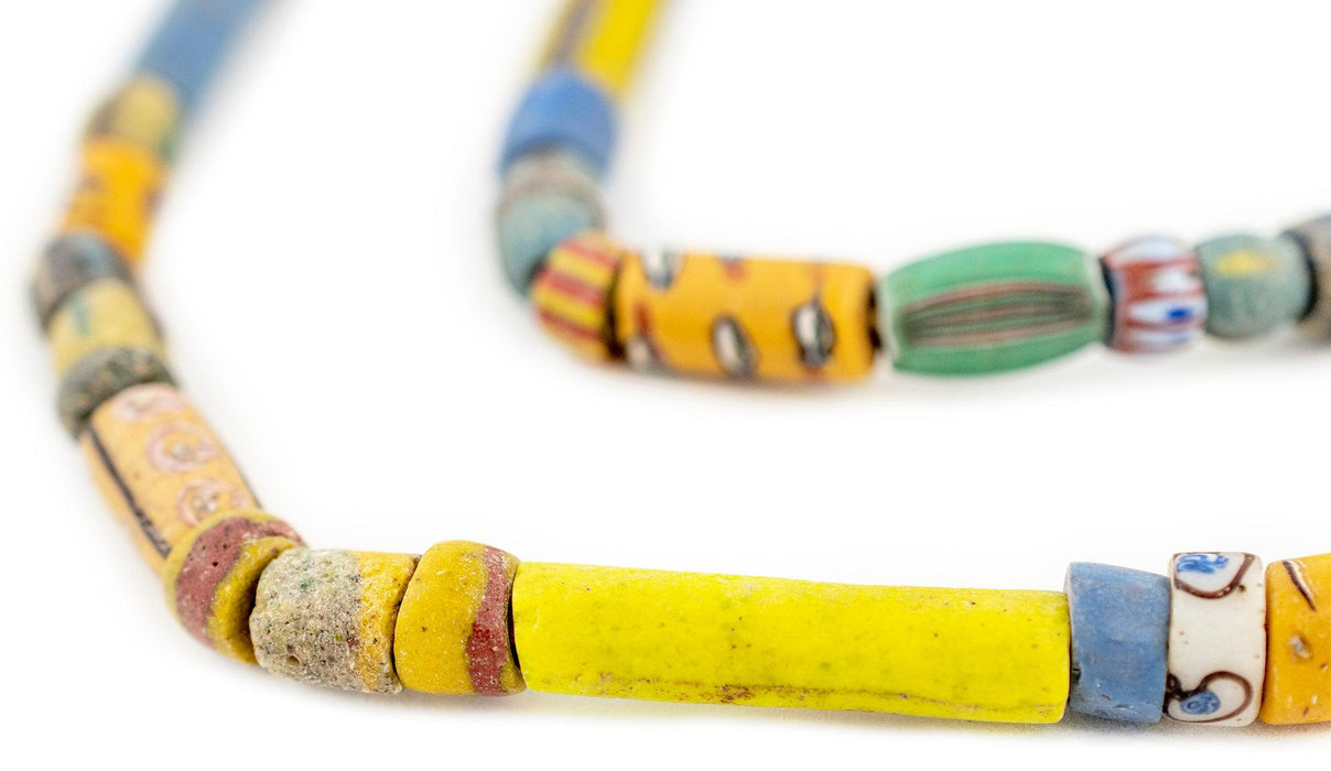 Looking for a truly unique strand of antique mixed trade beads? Then look no further. This beautiful strand of old african trade beads contains a medley of hard to find beads. Each strand is unique but strands may include special beads including Bodom beads, Murano Red good beads, Millefiore, Red white and blue beads, French cross, King beads, Old powder glass beads, Dog tooth beads, Cornaline d'Aleppo Venetian Trade Beads, Russian Blue, Floral Venetian Beads, and many other unusual varieties of old African Trade Beads. These beads are for the designer and collector alike. You will receive the exact strand pictured. Some beads may be cracked and/or show signs of age. These mixed beads are truly exceptional!