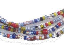 Bright, beautifully colored glass trade beads with an occasional plastic spacer bead. Originally made in southern Spain and Venice especially for the African trade. Tribes would keep these beads as heirlooms for generations. They are now being accumulated in Nigeria and Ghana by the bead, and restrung for your beading projects. Strand lengths will vary randomly from 33 inches to 35 inches.