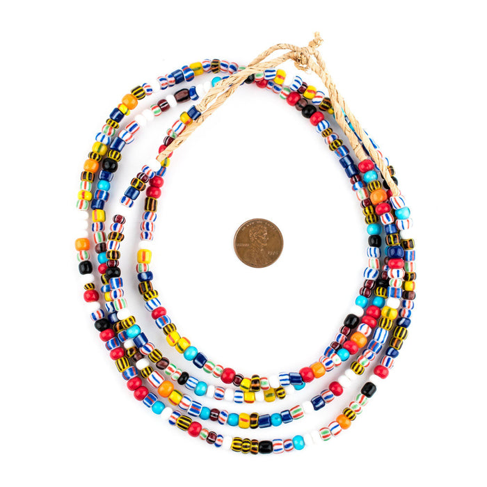 We are in love with the unique and bright colored patterns of these striking Ghanian Glass Seed Beads. These Glass Seed Beads are truly remarkable and you will be able to add so many different accents to your original jewelry designs with these strands of glass beads. These Glass Seed Beads even look stunning when worn as is as a simple necklace. Each artisan bead strand is about 28-30" in length. Each handcrafted bead is approximately 4-5 x 5-7mm and roughly has a 2mm bead stringing hole. Multiple strands pictured. Each strand sold individually. Add a pop of color to your custom jewelry designs today!