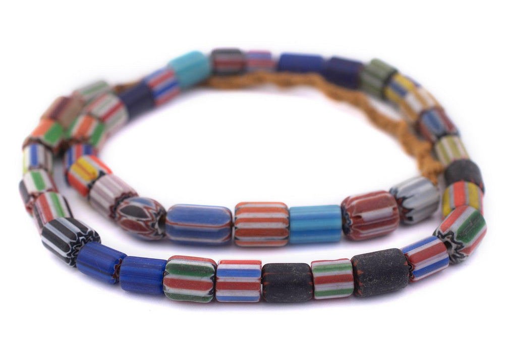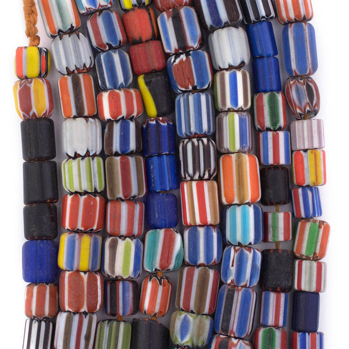 Take a look at this incredible strand of Himalayan Chevron beads. These beads are inspired by older Chevron beads, which are highly sought-after by bead collectors and bead lovers alike. They are considered among the classic beads of the African Trade. The first Chevron beads were made from Murano glass in the late 15th century and were characterized by their unique rosetta or star design made by alternating layers of glass. Over the subsequent centuries, Chevron beads were made for trade throughout Africa as well as the Americas where they may have been introduced by Christopher Columbus. Each bead measures approximately 9-13 x 9-12mm with a hole size of approximately 1-2mm. You will receive a full strand measuring approximately 24". Strand may vary slightly from photograph. Up to several beads per strand may be chipped due to extensive travel. Get your strand today!