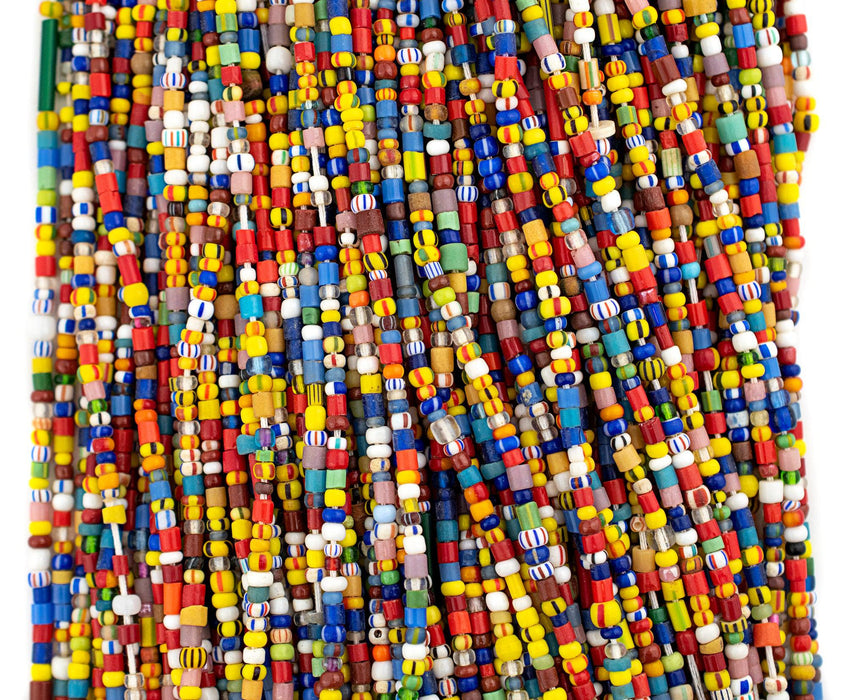 Christmas beads comprise of a special blend of choice beads created in former Czechoslovakia for use in Africa. Also known as "African love beads," each strand is 100% unique; no two strands are alike. Please take note: these beads are authentic vintage production, unlike modern replicas which are widely available in the market today. These fun beads can either be used for your own beaded creations, or worn as is. Traditionally, multiple strands are worn at once. Available in a variety of sizes and styles. Multiple strands pictured. Each strand sold individually. Get yours today!