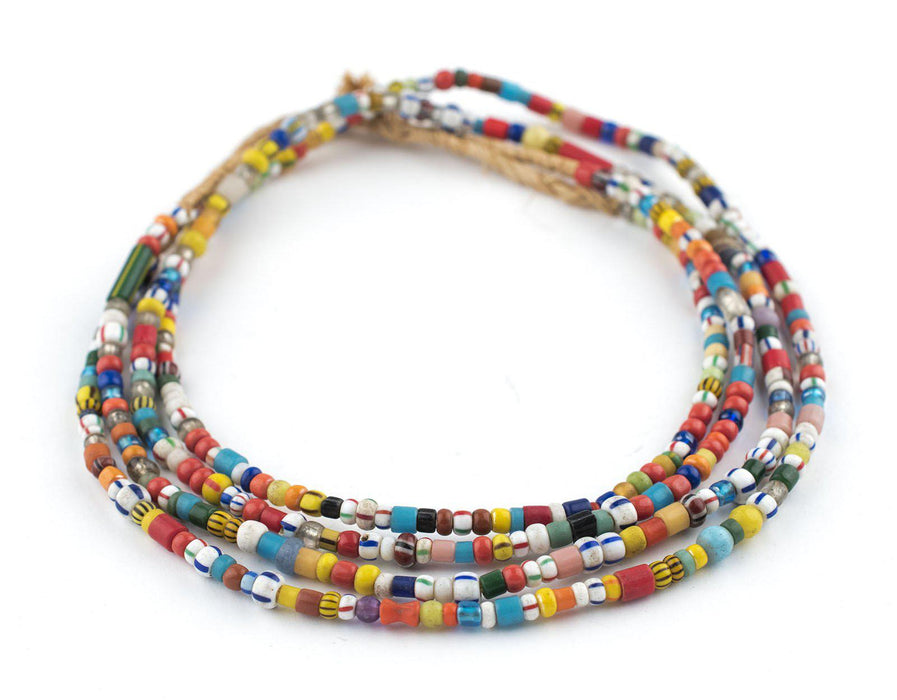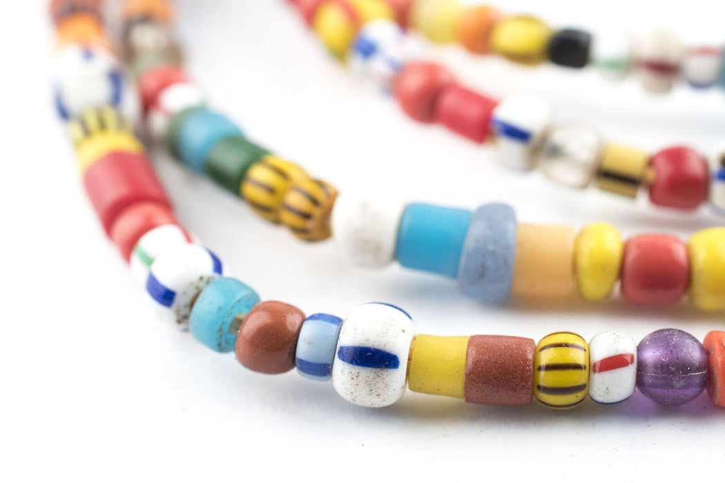 Christmas beads comprise of a special blend of choice beads created in former Czechoslovakia for use in Africa. Also known as "African love beads," each strand is 100% unique; no two strands are alike. Please take note: these beads are authentic vintage production, unlike modern replicas which are widely available in the market today. These fun beads can either be used for your own beaded creations, or worn as is. Traditionally, multiple strands are worn at once. Available in a variety of sizes and styles. Multiple strands pictured. Each strand sold individually. Get yours today!
