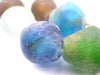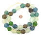 Take a look at this exceptionally large strand of jumbo-sized multicolor recycled glass beads. Large beads such as these are hard to find and even harder to find in good condition. The journey from Africa can sometimes be unkind to such large beads! These beads are sure to make an impression wherever they go. Use them as centerpieces for special jewelry, as adornments for interior design, or even as a wall hanging to decorate your favorite room. You will receive a 33" strand with approximately 28 beads. Recycled glass beads are a type of indigenously produced African bead from Ghana West Africa. These special beads are made using an old method that has been used for centuries. The glass itself is derived from a variety of recycled sources including old beverage and medicine bottles. The procedure for making the beads consists of a number of steps whereby powdered glass is poured into molds of clay and baked in a specialized oven. These beads are produced in large part by the Krobo tribe and are environmentally friendly. Non-USA buyers, please note that a heavy-weight surcharge may apply for this item. Please inquire in advance if you would like to pre-confirm this fee.