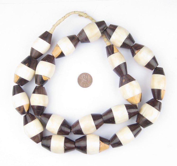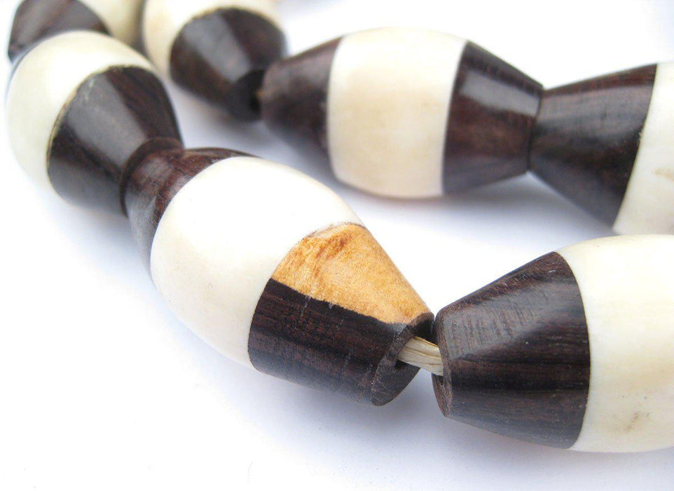 Multicolor Inlaid Ebony & Bone Tanzanian Bicone Beads