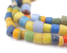 Checkout this beautiful multicolored strand of African sandcast beads. The process of making these beads is unique to Africa and has been used for over 1000 years. Pulverized glass of various colors is poured into a clay mold, using a cassava stem for the bead's hole. The mold is placed in a furnace and heated until the glass particles congeal without actually melting and the stem burns out. The Ghananians have been making beads in this manner since the 1600s.