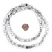These tribal aluminum beads are made in a design traditional to the Mursi people. The Mursi are a pastoralist tribe who live in various parts of Ethiopia, and are known for their unique and pronounced jewelry designs. Aluminum is a common choice for jewelry designers because it is lighter in weight and known to resist rust, while still resembling genuine silver. Each bead measures approximately 6 x 6mm with a hole size of approximately 2mm. You will receive a full strand measuring 24" long. Incorporate these beads into your next design!