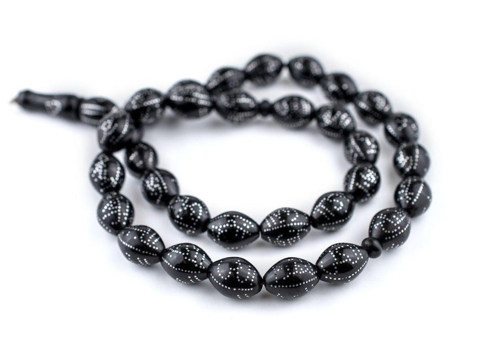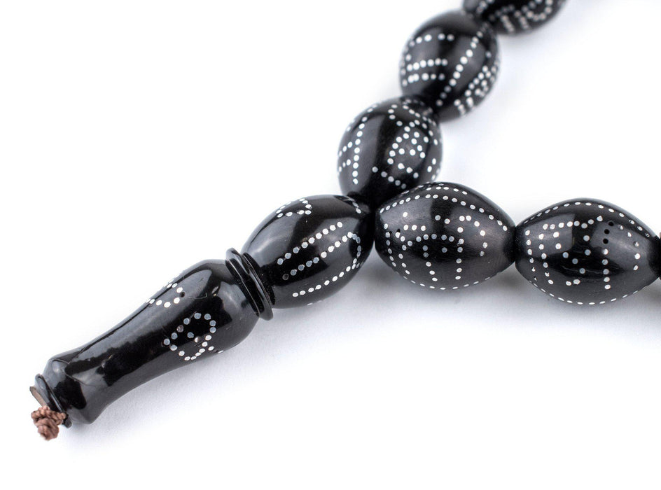 "Names of Allah" Oval Silver-Inlaid Arabian Prayer Beads