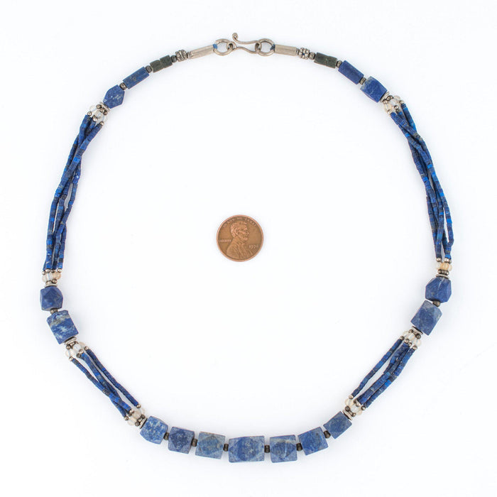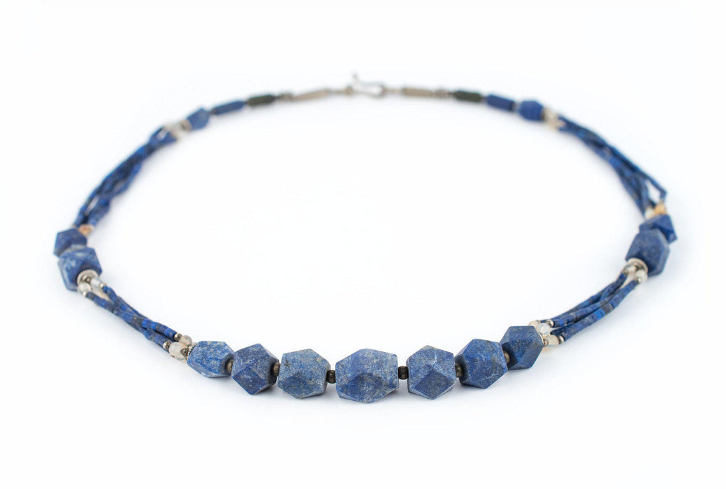 This necklace has been handcrafted by jewelry-makers in Afghanistan. Jewelry made from natural blue Lapis stone has long been a regarded as a luxury throughout the world. Look closely and you will be able to appreciate the detail and quality that has been hand-carved into each bead. This necklace measures approximately 20" in length and is nicely finished with a clasp. Supply is very limited. Would make a perfect one-of-a-kind or special gift. Grab one for yourself or for a loved one today!