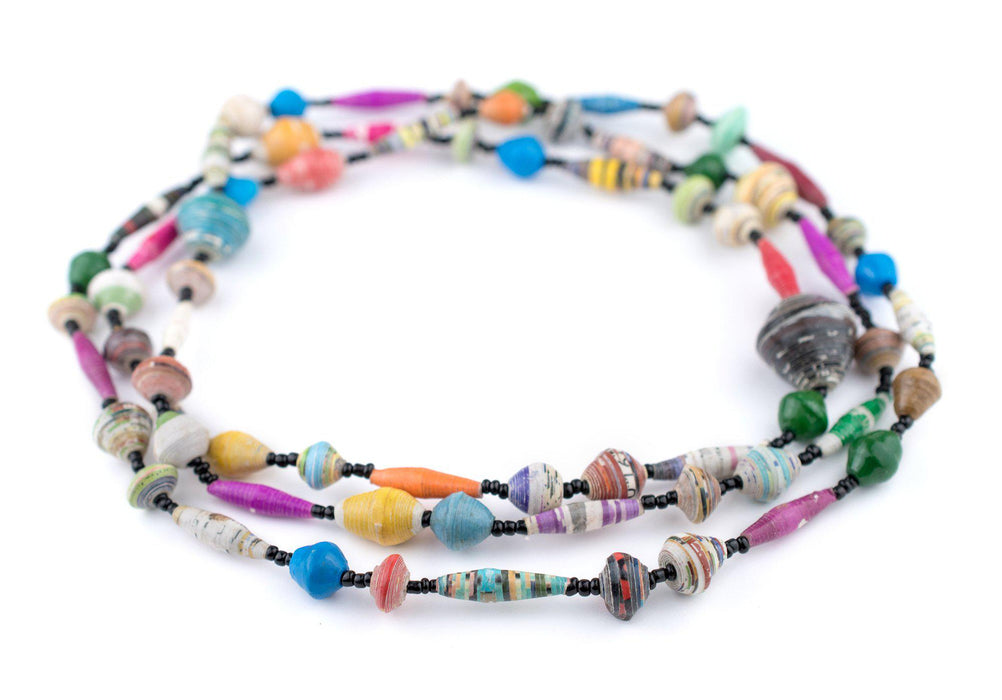 Beautiful strand of recycled paper beads. These beads are made using recycled paper by working mothers in Uganda. Each bead is fair trade and handmade with love. Individual beads measure approximately 20x28mm for larger size beads and 12x10mm for smaller size beads with about 40 beads on each strand. Some beads may show slight sign of use, as they have passed through hands at African markets. Color of beads may vary from photo as each strand is individually made by hand.