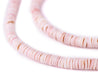 These pink color heishi beads are made from real sea shell. The slight variations in colors and shape of the beads will make them a fun addition to your beading project. Look carefully and you will see that each bead is unique. Individual beads measure approximately 1-2 x 5mm diameter with approximately 500 beads on each 24" strand. Use them as spacers or accent beads. The natural character of these beads is sure to add an authentic touch to your jewelry designs!