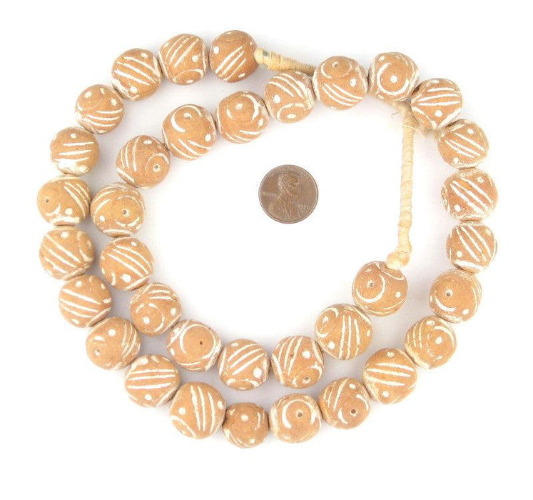 Amazing strand of natural terracotta beads. Beautifully handcrafted, each round bead may show slight variation in size and pattern however, the size of the beads is fairly uniform.