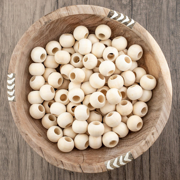 Natural Wood Macrame Beads (18mm, Set of 100)