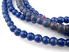 Take a look at these cool navy blue color glass baby padre beads from Nigeria. Unlike more common padre beads, these are smaller in size and more versatile as spacers. Two strands shown however each strand is sold individually. Individual beads measure approximately 5-6mm in diameter.