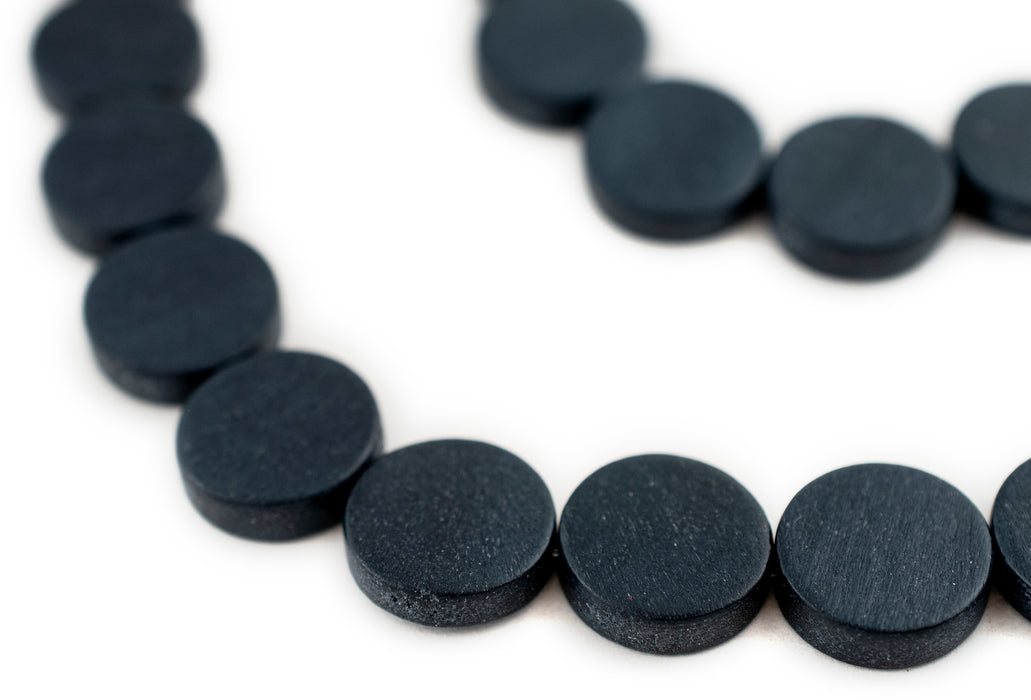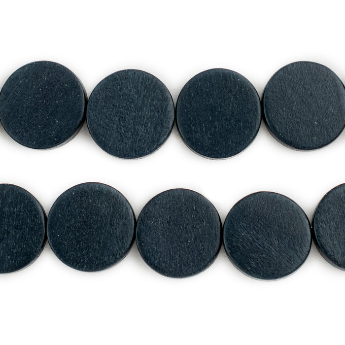 Navy Blue Circular Natural Wood Beads (15x15mm)