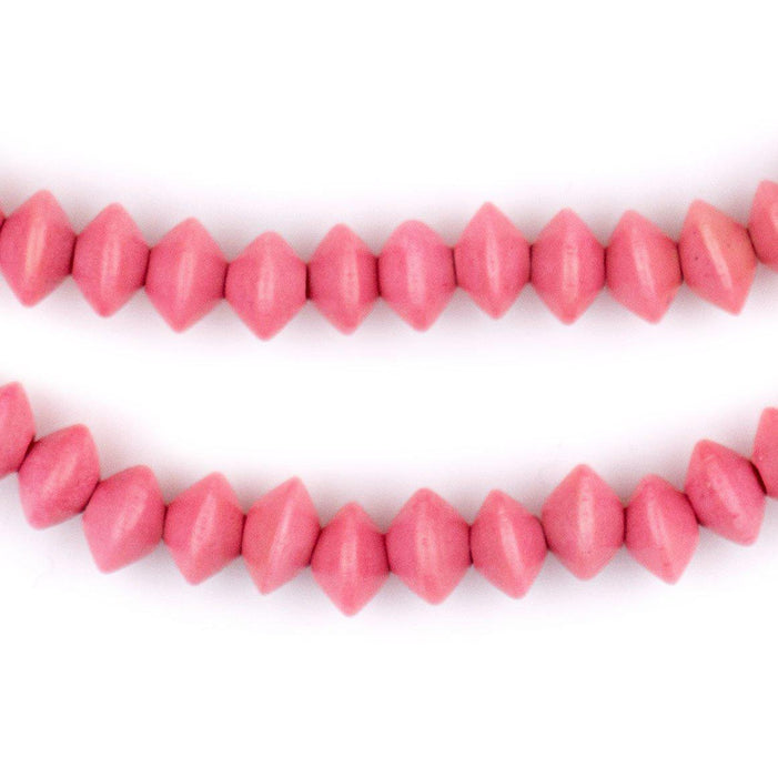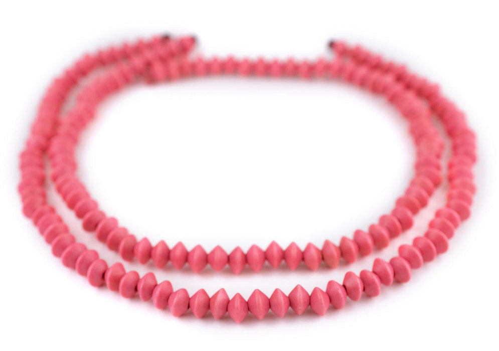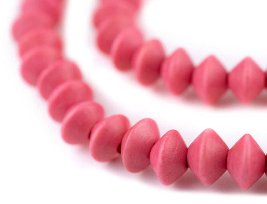 Neon Pink Bicone Natural Wood Beads (5x8mm)