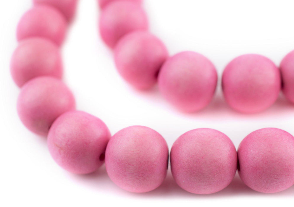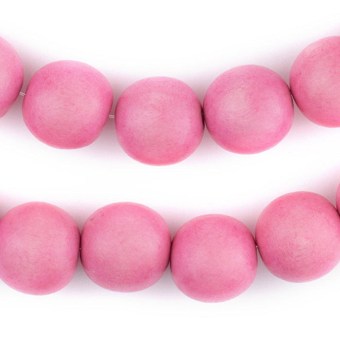 Neon Pink Round Natural Wood Beads (16mm)