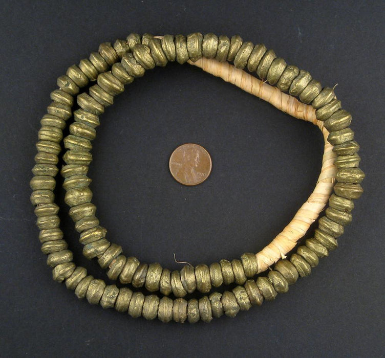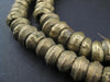 Take a look at these unusual Nigerian brass rings. Each bead is individually handmade. The strand is 27" and includes approximately 100 rings with each bead measuring about 6mm wide by 12mm in diameter.