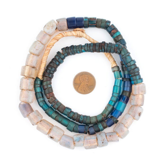Old Aqua Ghana Glass & Moon Bead Medley #2614