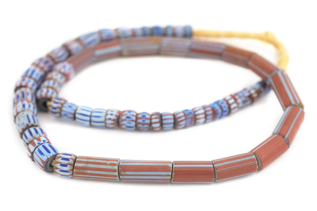 Admire this beautiful strand of Awalleh trade beads. These authentic chevron beads are larger than standard, measuring approximately 2-20 x 4-10mm with a hole size of approximately 1-2mm. Each strand measures approximately 26" including raffia. Awalleh African trade beads are becoming more and more difficult to find, particularly in this size. You will receive the exact strand pictured. Get yours while you can!
