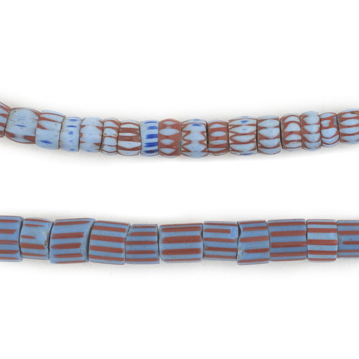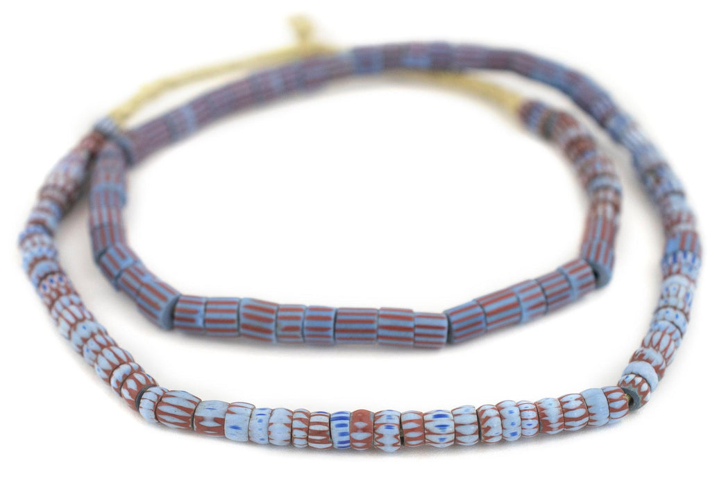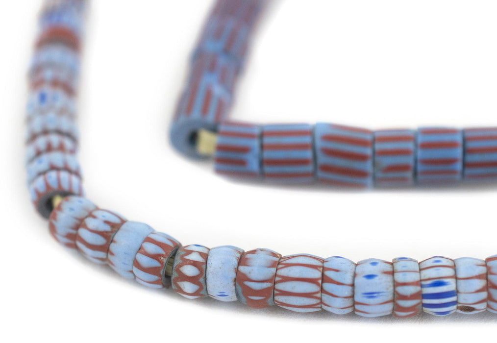 Admire this beautiful strand of Awalleh trade beads. These authentic chevron beads are larger than standard, measuring approximately 2-20 x 4-10mm with a hole size of approximately 1-2mm. Each strand measures approximately 26" including raffia. Awalleh African trade beads are becoming more and more difficult to find, particularly in this size. You will receive the exact strand pictured. Get yours while you can!