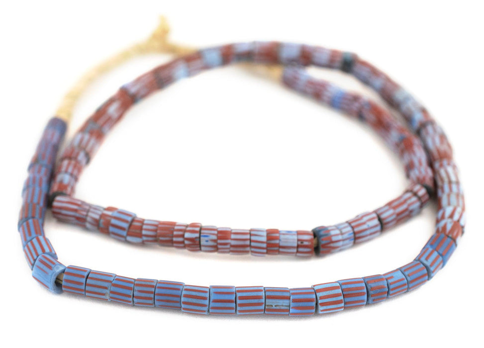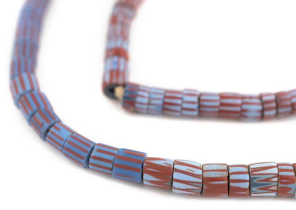 Admire this beautiful strand of Awalleh trade beads. These authentic chevron beads are larger than standard, measuring approximately 2-20 x 4-10mm with a hole size of approximately 1-2mm. Each strand measures approximately 26" including raffia. Awalleh African trade beads are becoming more and more difficult to find, particularly in this size. You will receive the exact strand pictured. Get yours while you can!