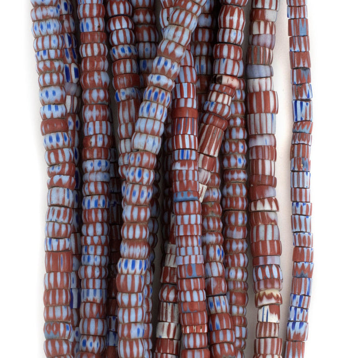 Admire this beautiful strand of Awalleh trade beads. These authentic chevron beads are larger than standard, measuring approximately 3-5mm with a hole size of 1mm. Each strand measures approximately 22" including raffia. Awalleh African trade beads are becoming more and more difficult to find, particularly in this size. Get yours while you can!
