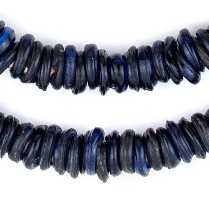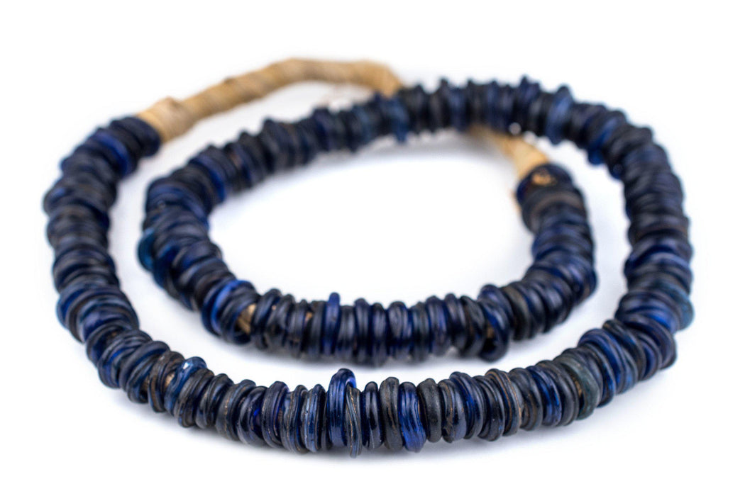 Fabulous strand of old annular wound trade beads also known as "Dutch Donuts". These african trade beads have traveled at least three continents and have graced numerous owners. Beads may have small chips or corrosion due to their age and extensive use. These Ethiopian Dogon beads have a more irregular look than the Nigerian Dogon. Look closely and you can see in the detail how the glass has been hand shaped into rings. Each strand is unique and may vary slightly from photo.