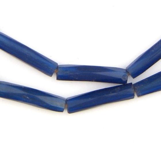 Admire this magnificent strand of old Russian Blue beads. Beads such as these derive their name from the fact that they were traded extensively in the fur trade of the Pacific Northwest during the 18th and 19th century. Both Russian fur traders and representatives of the Hudson Bay Company are known to have used Russian Blue beads to trade with native tribespeople of the Americas. Interestingly, beads such as these were original made in Bohemia and Czechoslovakia where specialty bead-makers harnessed the power of running streams to refine the art of crafting hand-faceted beads. The beads they produced subsequently found their way across the Pacific Ocean and also to the Southern Hemisphere and Africa. This particular strand is consists of larger beads in a darker shade of blue. The dark shades of these graduated beads are the most highly coveted. This strand is indeed a special find!