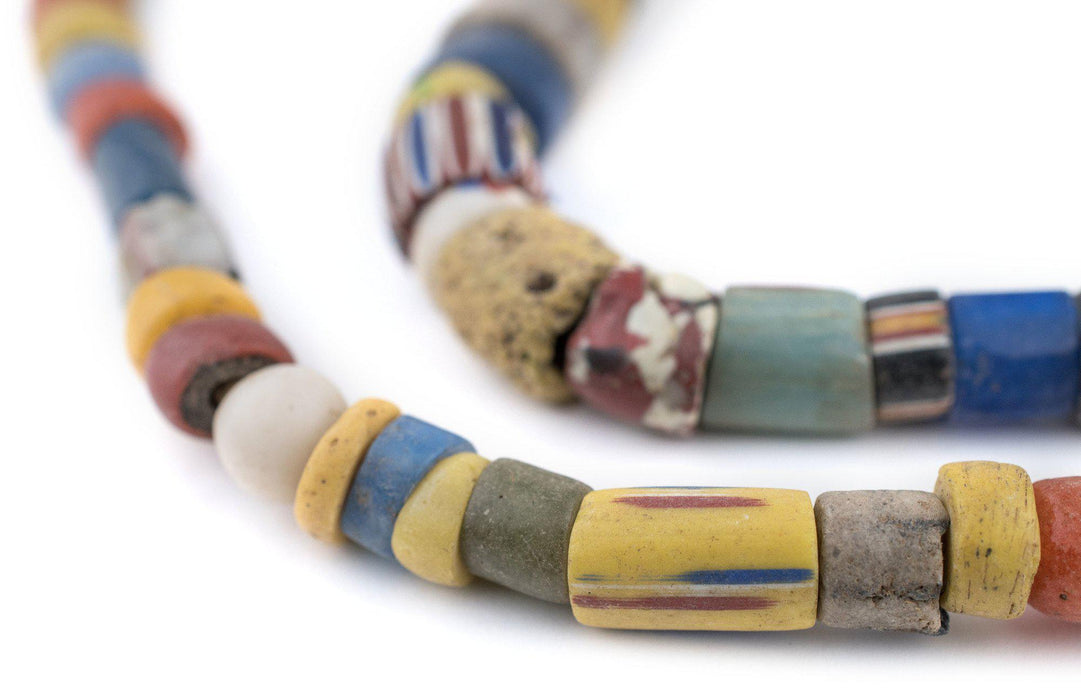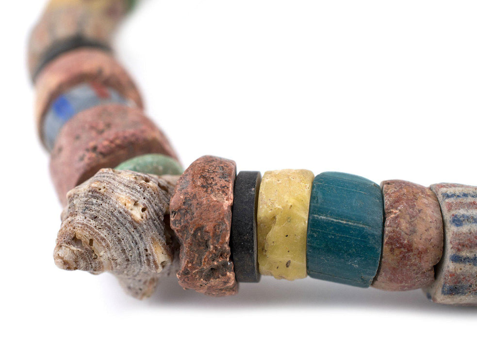 These assorted old Ghana beads reflect the diverse sources of African Beads. Each strand will include a variety of beads that may include imported trade beads such as Venetian and Czech Glass as well as home grown indigenous beads such as vintage Sandcast , Bauxite stone, and other varied beads. Bead size is approximately 2-22mm wide and 7-18mm in diameter on a long strand measuring about 32" in length. Every strand is unique and may vary from photo. Pictured strands are intended to be representative of the quality of the beads you will receive. Bead count is approximate. Limited stock.