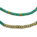 The distinctive vibrant green of these watermelon chevron beads is enticing to the eye. These beads derive their name from the characteristic green pattern on the outer layer of the surface. Old Venetian Beads such as these are becoming increasingly difficult to find. This particular strand has two varieties of watemelon beads and has been nicely strung on raffia in a traditional fashion. Individual beads measure 2-4 x 4-6mm with a strand length of 24". Only one available.