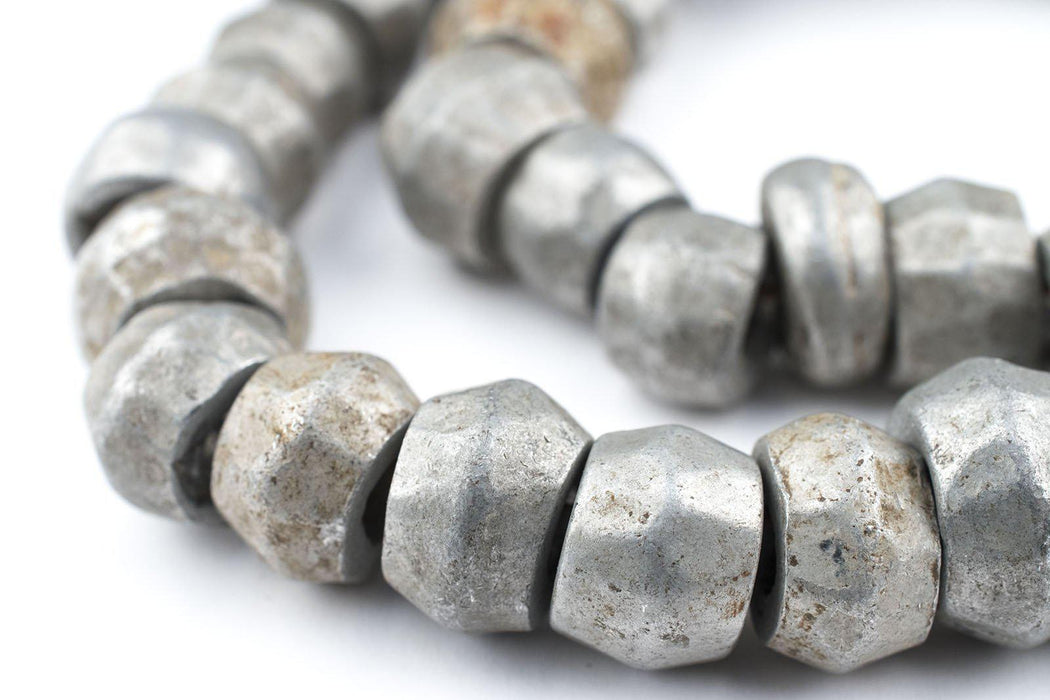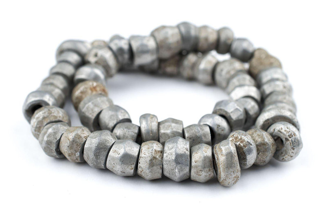Wow. Take a look at this amazing mix of beads made by the Mursi tribe from Ethiopia. These unusual beads are made by recycling old aluminum from old pots and tools. These beads are nice to work with because they not only look interesting but are also light weight. You will receive the exact strand pictured!