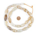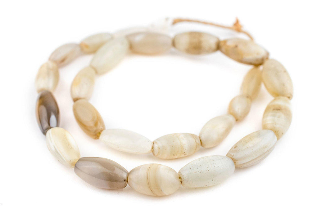 These old natural stone beads are found in Nigeria. Populating a wide swath of West Africa, the people of the Fulani tribe have long put high value on the decorative arts. Although the exact provenance of these beads is unknown it's possible that that they may have originated in Southeast Asia and been subsequently traded to the African Continent. Strung on a durable cord and nicely finished with raffia, each bead is unique and will have it's own special pattern and texture. These beads are a harder to find smaller size measuring approximately 9-17mm. Some beads may show signs of age. Good for jewelry-making, home decor, or even may be worn as a necklace. You will receive the exact strand pictured.