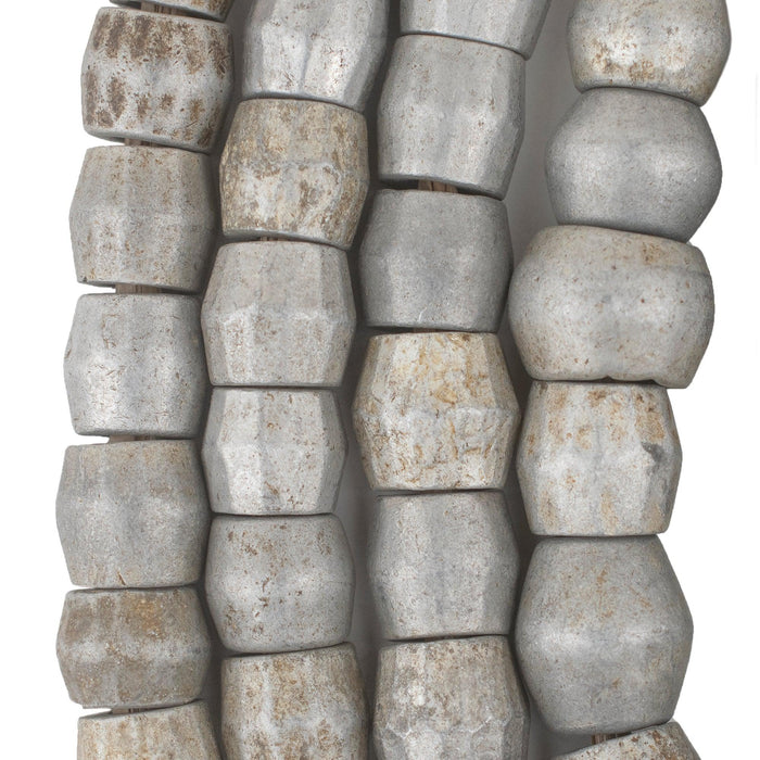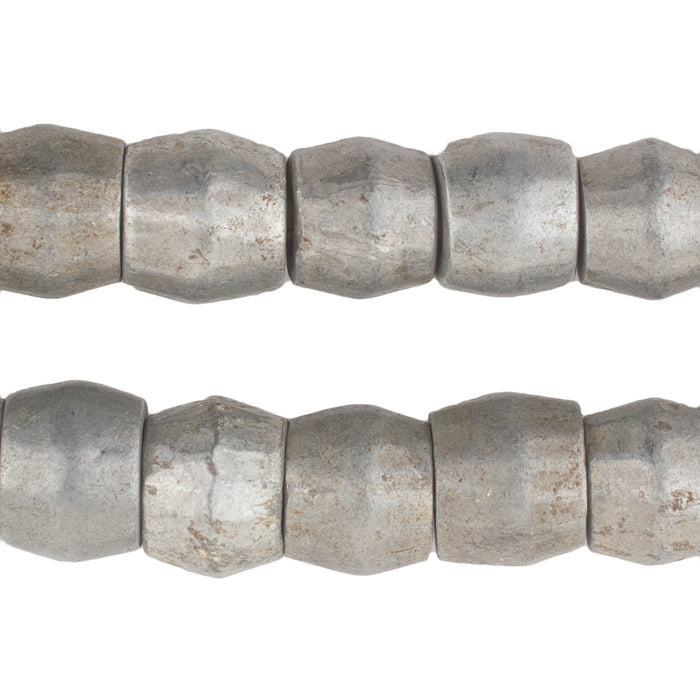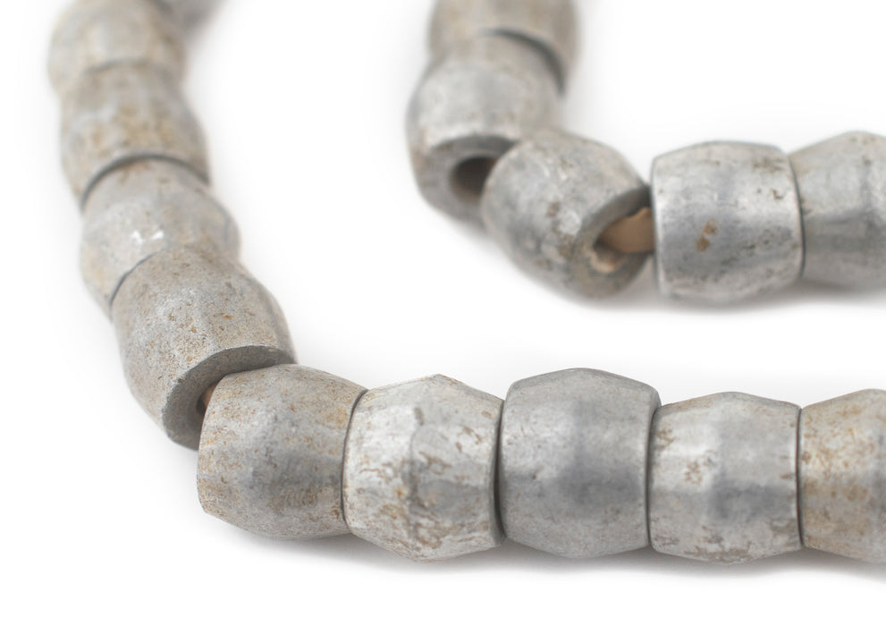 Take a look at this amazing mix of beads made by the Mursi tribe from Ethiopia. These unusual beads are made by recycling old aluminum from old pots and tools. These beads are nice to work with because they are not only interesting but are also light weight. These beads are becoming more and more difficult to come by! Each bead measures approximately 9-17 x 13-19mm with a hole size of approximately 5mm. You will receive a full strand measuring approximately 26". Each strand is unique and may vary slightly from photo.