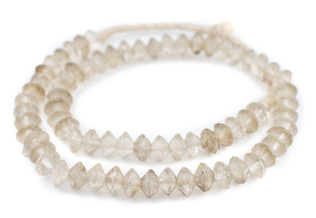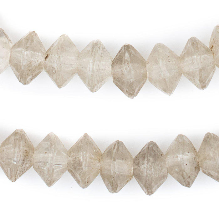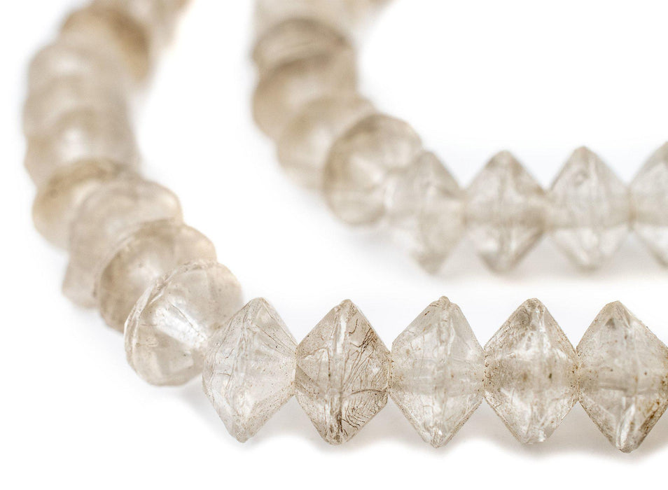 These authentic vintage blue Vaseline beads are rare both in their color and in their shape. Made from Bohemian Glass during the 1800's, beads such as these were likely faceted by hand for export to Africa. During the Golden Period of Glass Making the Glassworks in around Bohemia were world renowned for the quality and variety of glass objects that were made including chandeliers, glassware, and beads, and other pieces of art. Vaseline beads are most commonly found in red, yellow, and green and clear Vaseline beads such as these are exceedingly rare. This 31" strand consists of approximately 70 beads each measuring about 14mm across. Only a few strands available.