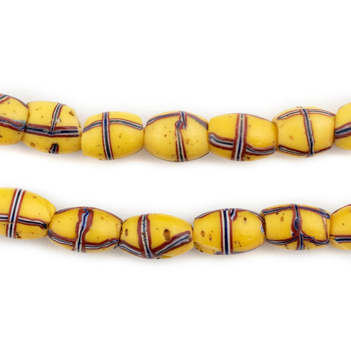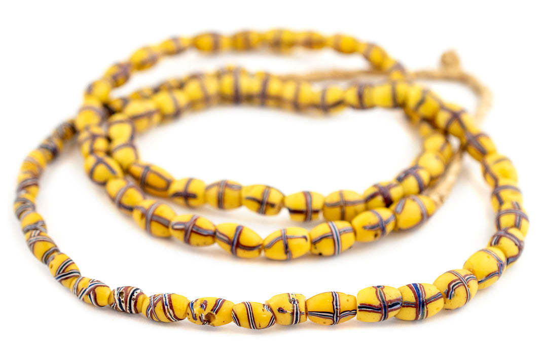 This old strand of Venetian French Cross Beads has been strung in a traditional length. Trade Beads such as these have traveled multiple continents and graced many owners. Vintage French Cross Beads such as these are increasingly rare and hard to find. This particular long strand measures approximately 36" with individual beads 9-13 x 6-8mm. You will receive the exact strand pictured.