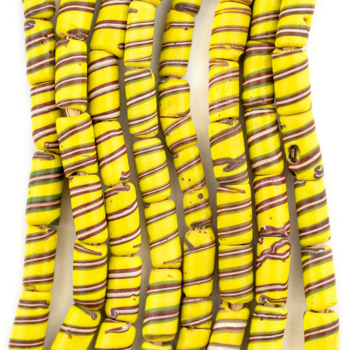 Take a look at this old, beautiful strand of French Cross African Trade Beads. They are Venetian made and have traveled many continents before being traded in Africa. The beads are approximately 11 x 5mm in size, with strands measuring approximately 24 inches long. A few beads may bead chipped due to age. Strand may vary slightly from strand pictured as each strand is unique. This style of French Cross beads is in a more rare spiral design. We've seen very few of these in our time!