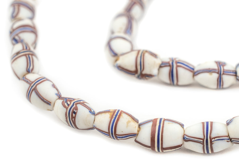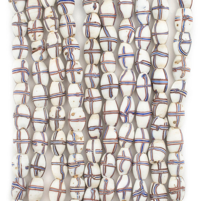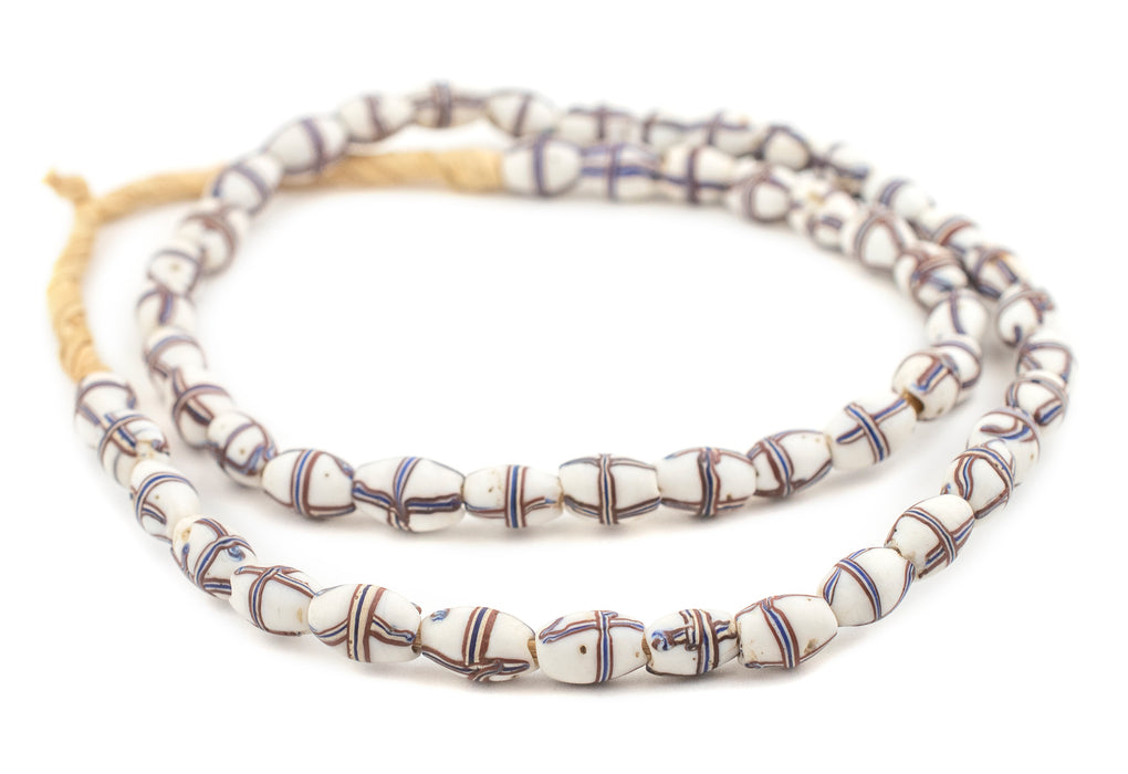 Take a look at this old beautiful strand of French Cross African Trade Beads. They are Venetian made and have traveled many continents before being traded in Africa. The beads are approximately 9-13 x 7-8mm with a hole size of approximately 1-2mm. Each strand measures approximately 25 inches. A few beads may bead chipped due to age. Strand may vary slightly from strand pictured as each strand is unique.