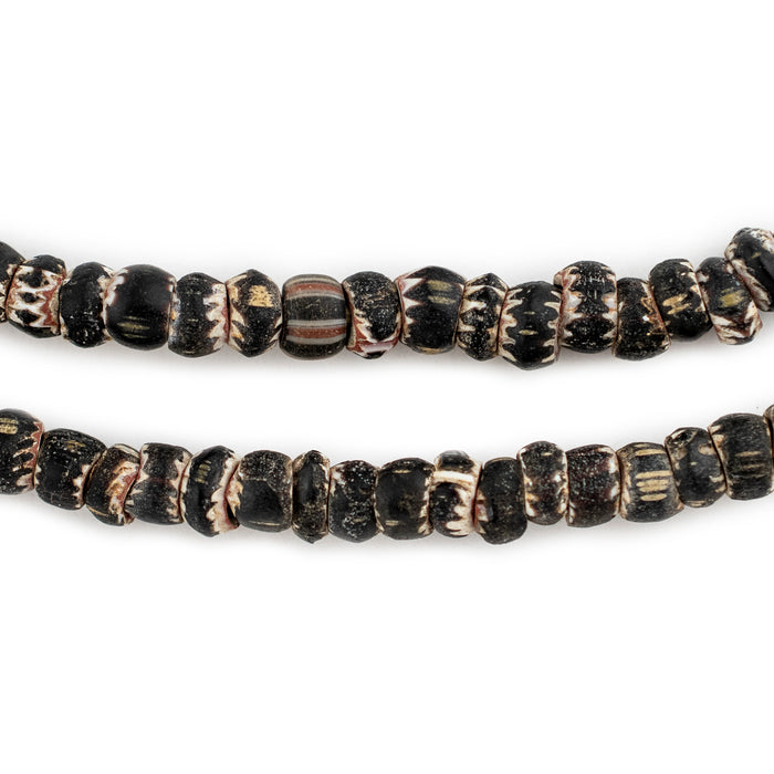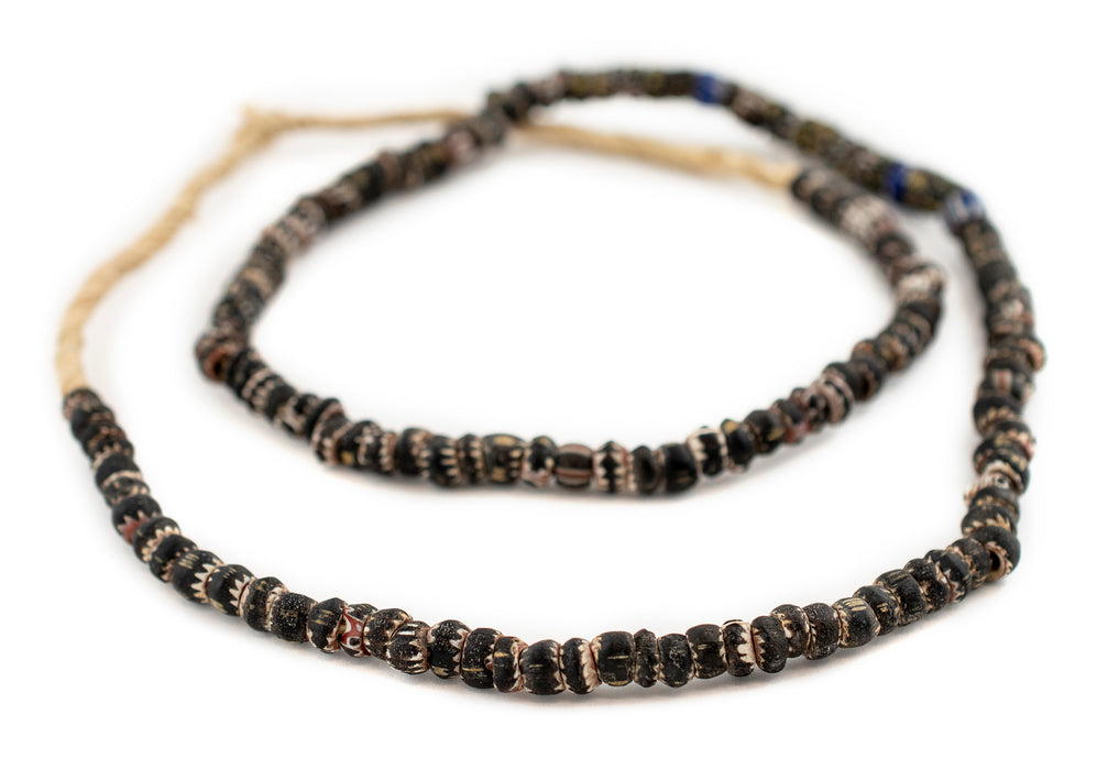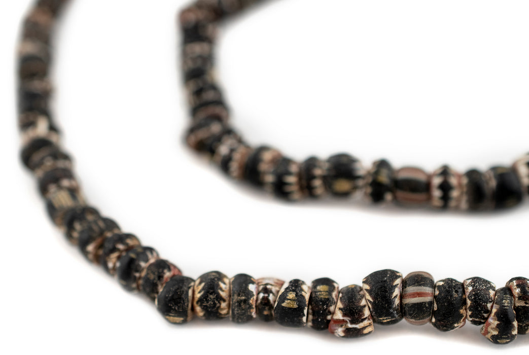 These distinctive Yellow Jacket Chevron beads are identifiable by their special colors and design. Chevrons are a classic style of Venetian trade bead that is made by layering different colors of glass on top of each other to creative the distinctive pattern on the ends of the bead. Yellow Jacket Chevrons are among the more coveted beads from the African Bead Trade. Each bead measures approximately 4-6 x 6mm, with a hole size of approximately 2mm. You will receive the strand pictured measuring approximately 26". There are around 142 beads on each strand. Unusual find at an unusual price!
