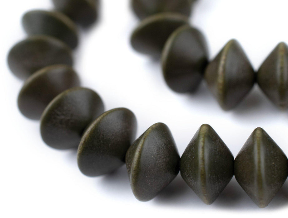 Olive Green Bicone Natural Wood Beads (10x15mm)