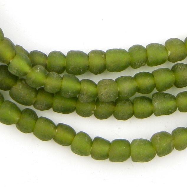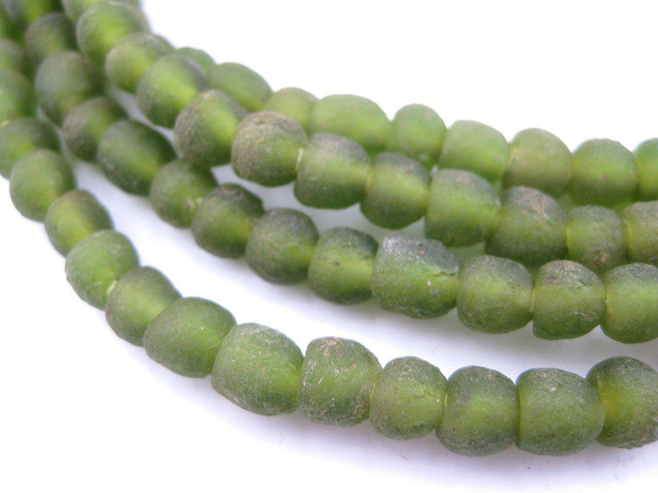 Take a look at this beautiful strand of olive green recycled glass beads. These beads are unusually small, in a hard-to-find 7mm size. Great for bracelets and earrings! You will receive a 24" strand with approximately 80 beads. Recycled glass beads are a type of indigenously produced African bead from Ghana West Africa. These beautiful recycled beads are made using an old method that has been used for centuries. The glass itself is derived from a variety of recycled sources including old beverage and medicine bottles. The procedure for making the beads consists of a number of steps whereby powdered glass is poured into molds of clay and baked in a specialized oven. These beads are produced in large part by the Krobo tribe and are environmentally friendly. Two strands pictured. Each strand is sold individually.