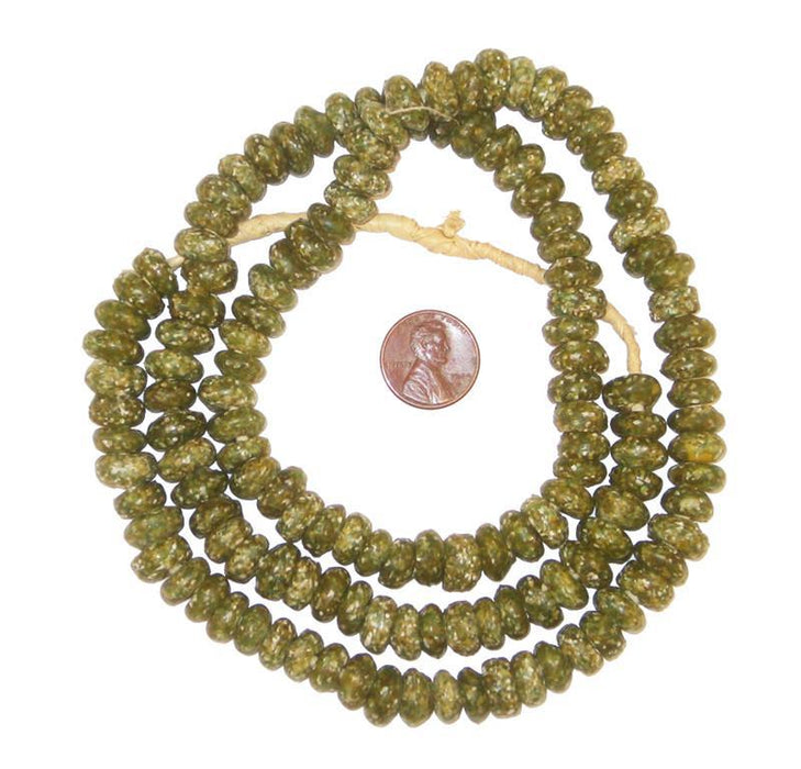 Camouflage Green Rondelle Recycled Glass Beads