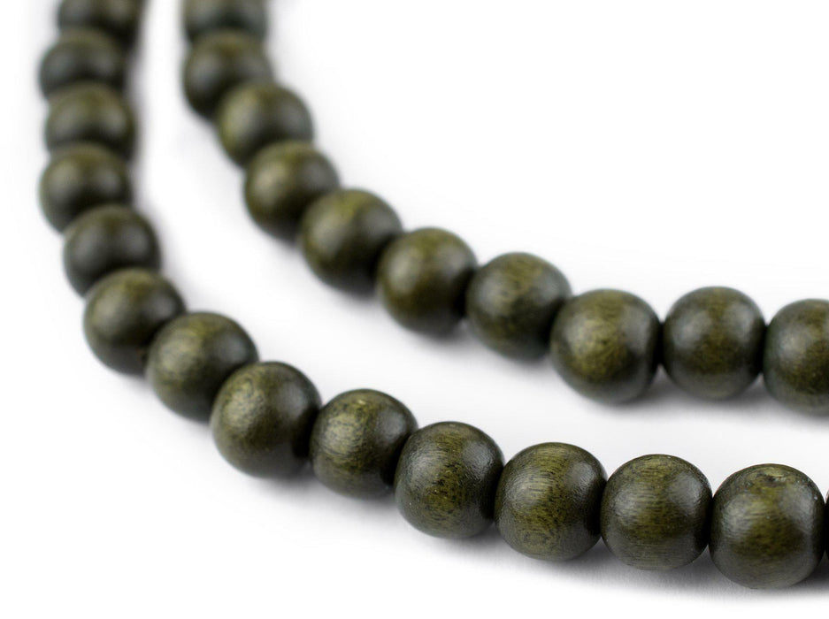 Olive Green Round Natural Wood Beads (8mm)