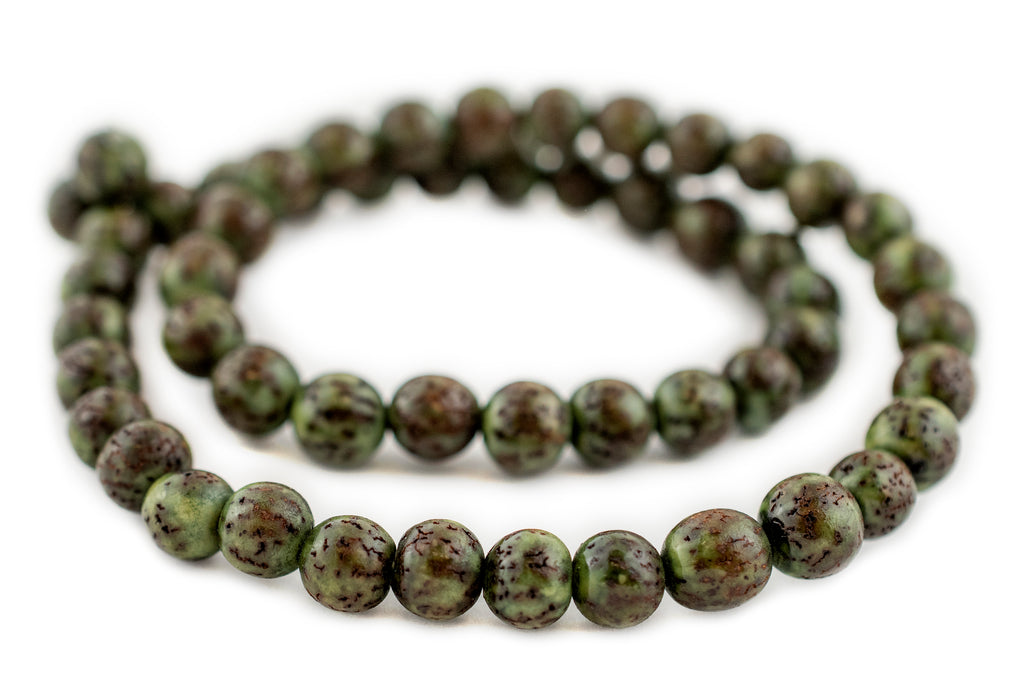 These striking beads are handmade using salvaged palm tree seeds. The slight variations in colors and shape of the beads will make them a fun addition to your beading project. Look carefully and you will see that each bead is unique. Each bead measures approximately 8 x 8mm, with a hole size of approximately 1mm. You will receive one strand measuring approximately 16". There are around 48 beads on each strand. Use them as spacers or accent beads. The rustic character of these beads is sure to add an authentic touch to your jewelry designs!