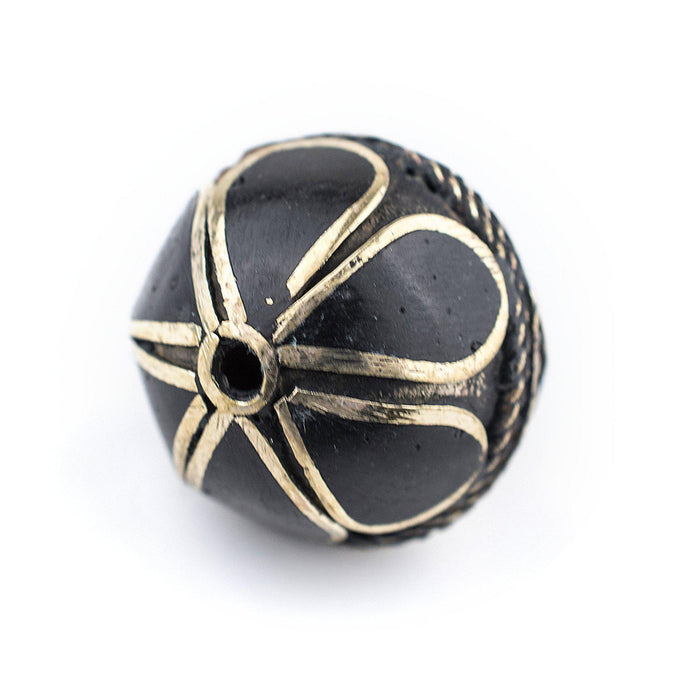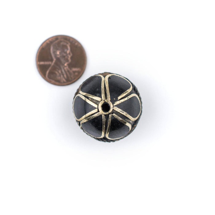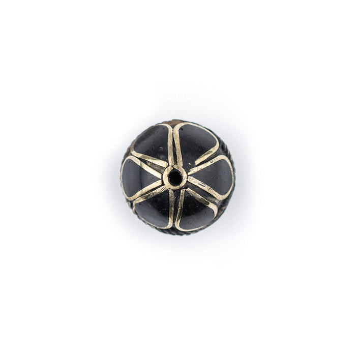Onyx-Inlaid Afghan Tribal Silver Bead (25mm)